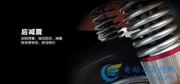 加粗弹簧,油压阻尼,骑行过程中减震效果更加明显,即使在颠簸的道路上也能舒适骑行。